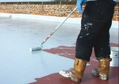 Liquid waterproofing involves the application of a monolithic, fully bonded, liquid-based coating to the substrate. The coating cures to form a rubber-like elastomeric waterproof membrane, capable of stretching and returning to its original shape without damage. Such coating systems are usually reinforced with secondary materials such as glass-reinforced plastic to provide additional tensile strength.